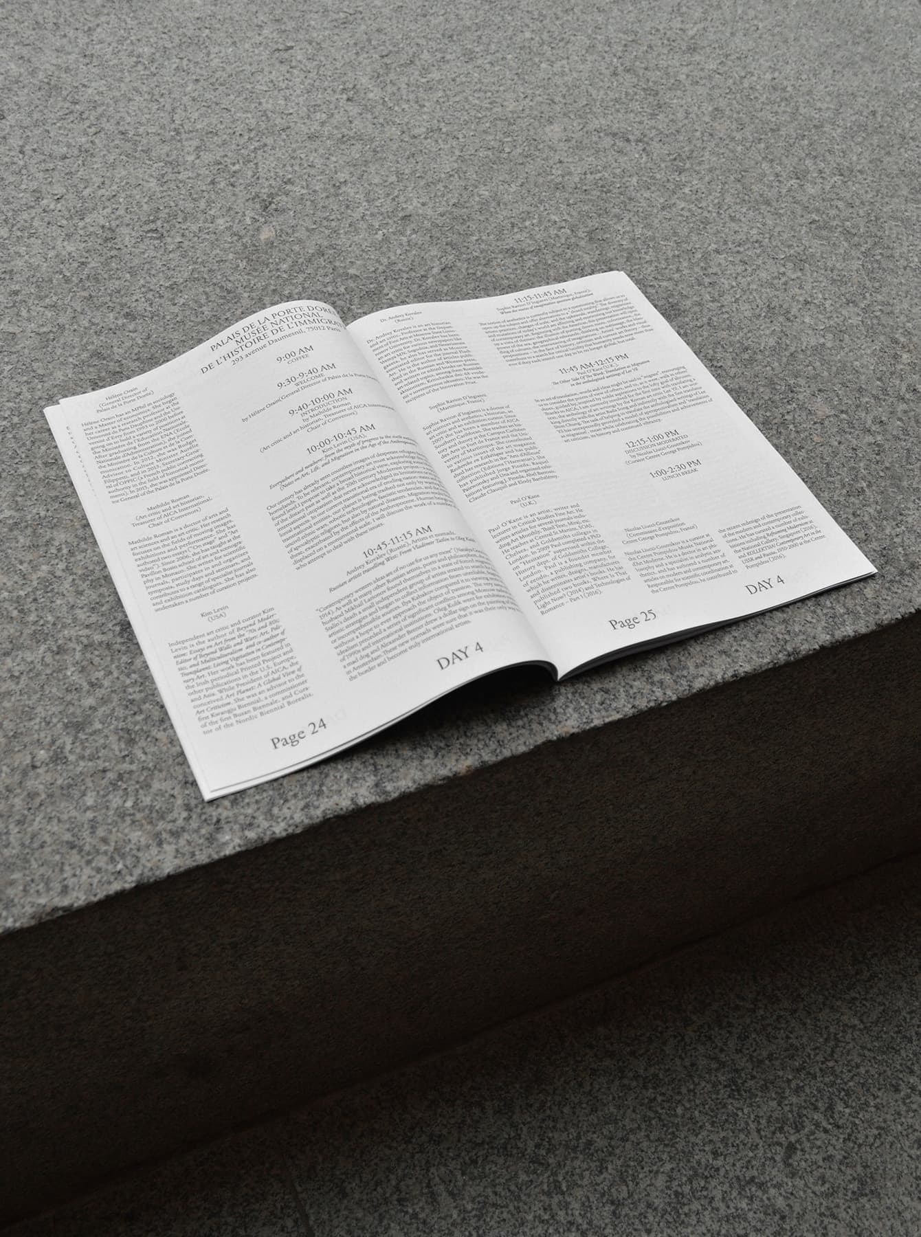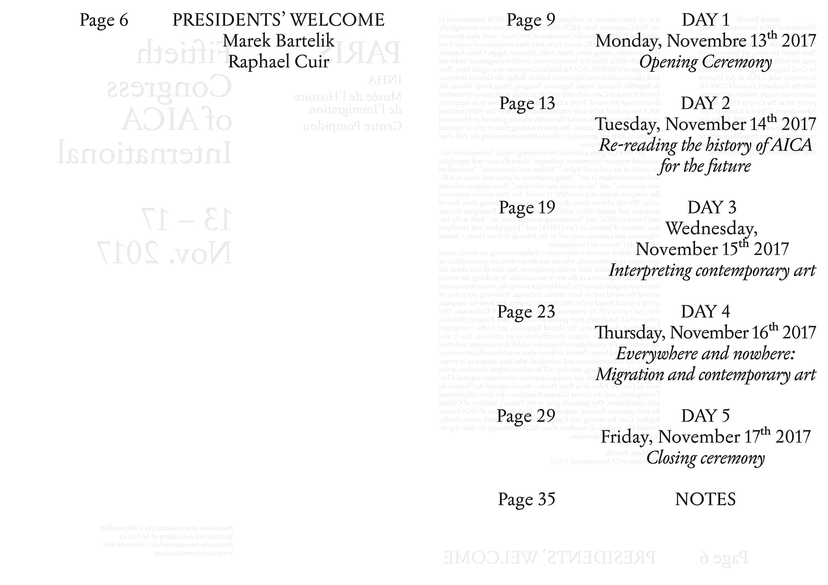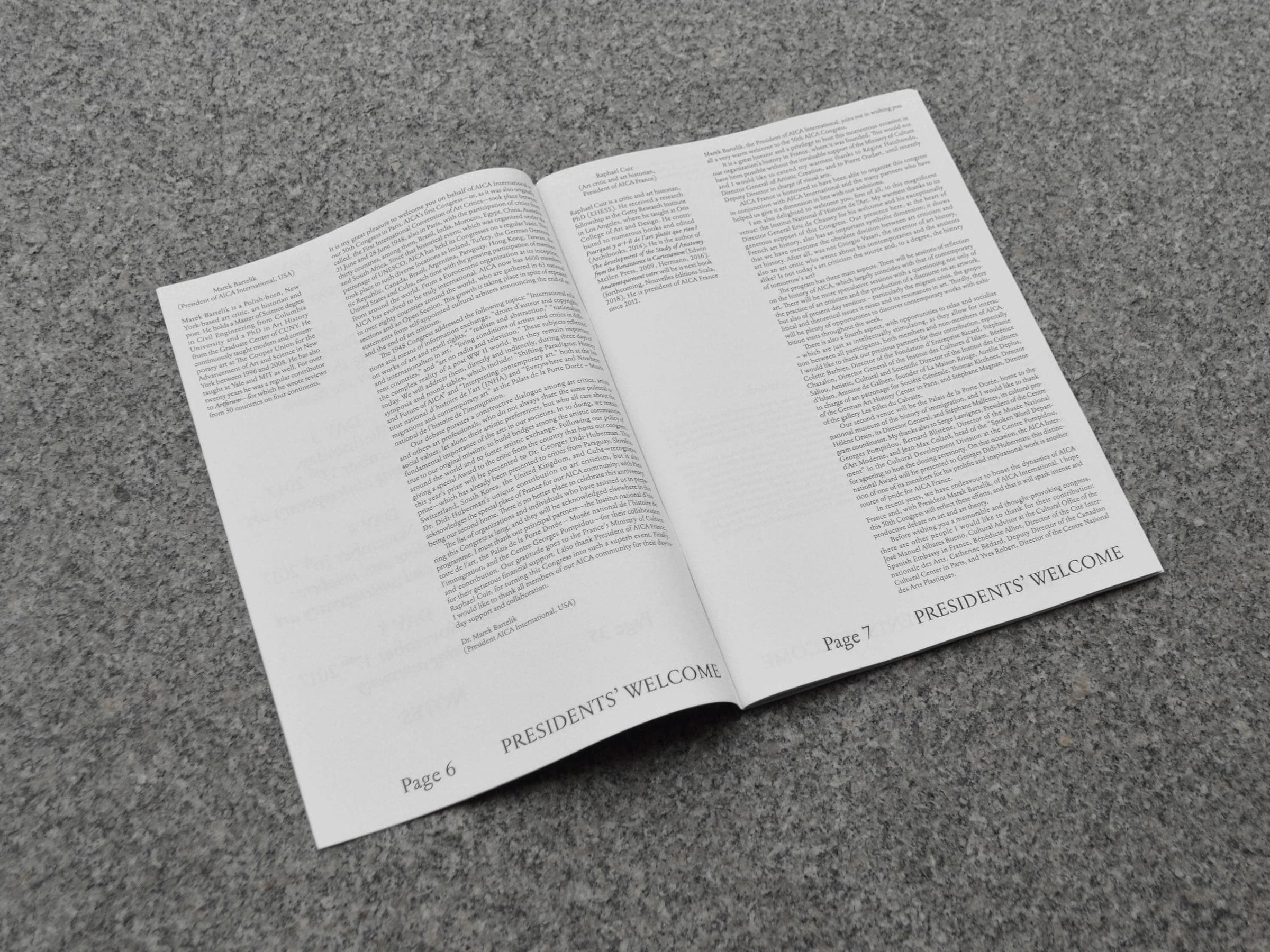 The (AICA) International Association of Art Critics Congress is an annual event for artists and art critics dedicated to dialogue and discussion around common matters. The 50th Congress that took place in Paris is identified by the letter “L” standing for 50 in Roman numerals. By its shape, the letter “L” naturally offers a space for expression and thus, the visual identity symbol became a vehicle for structuring the layout both for the event program and its poster.