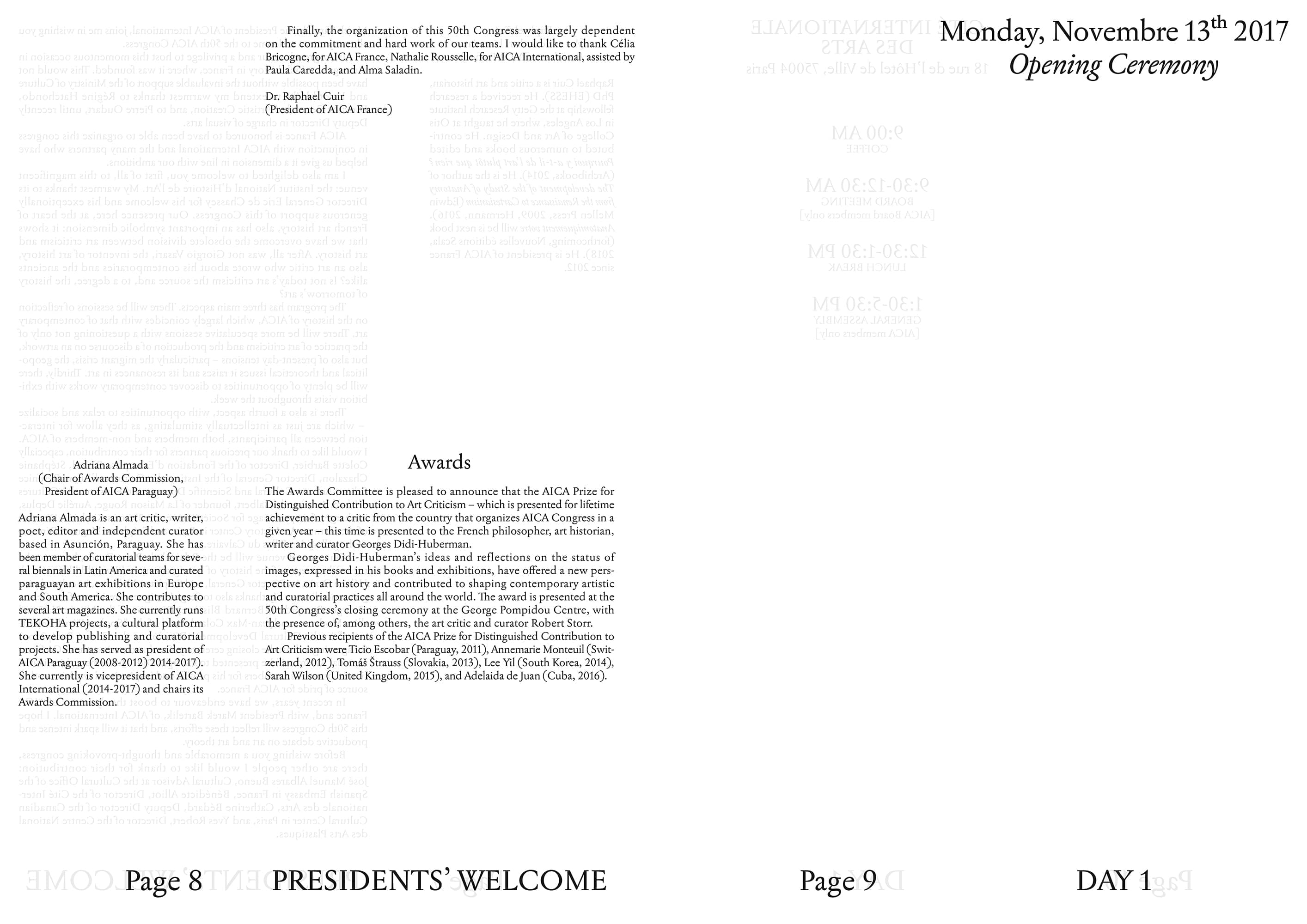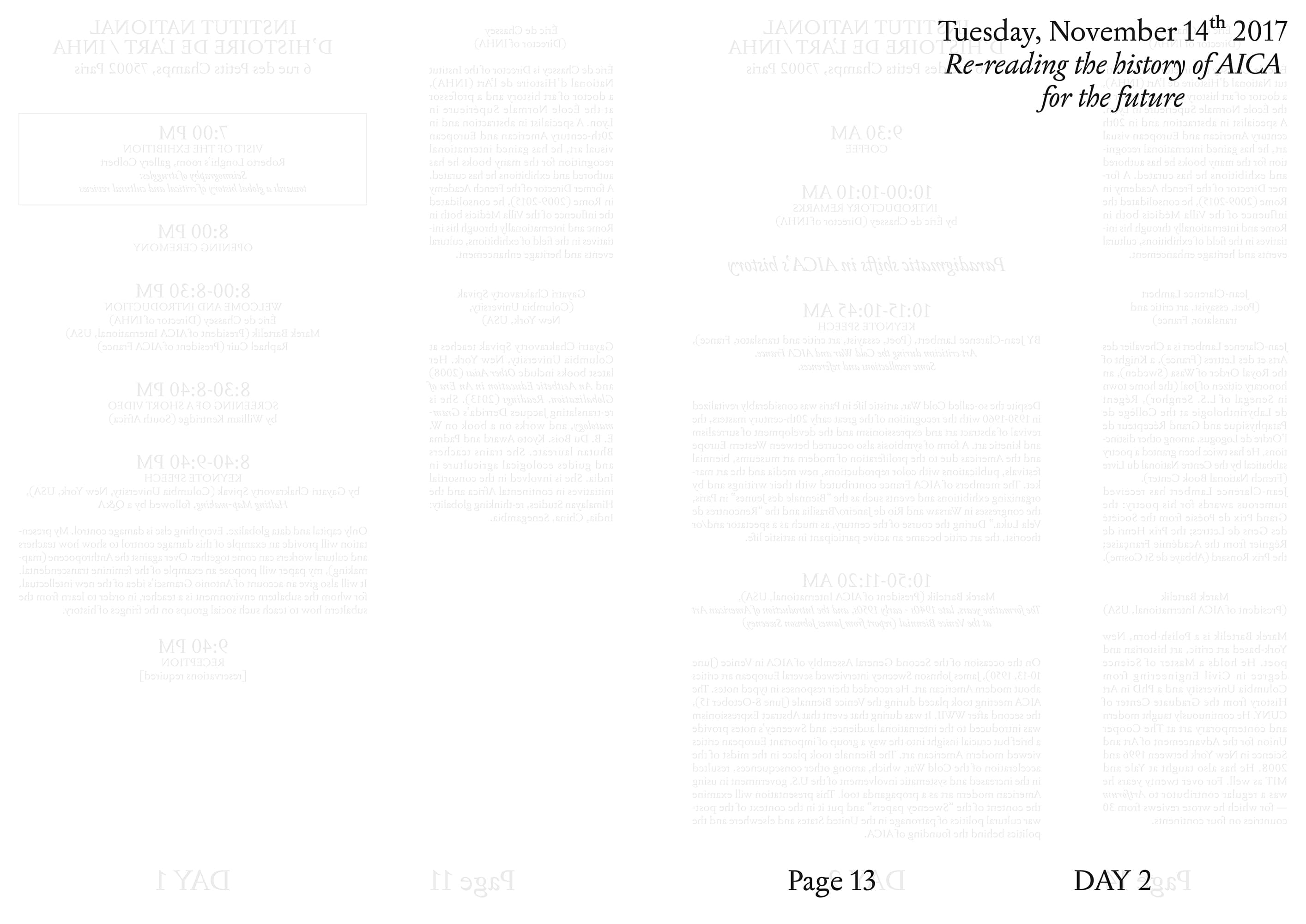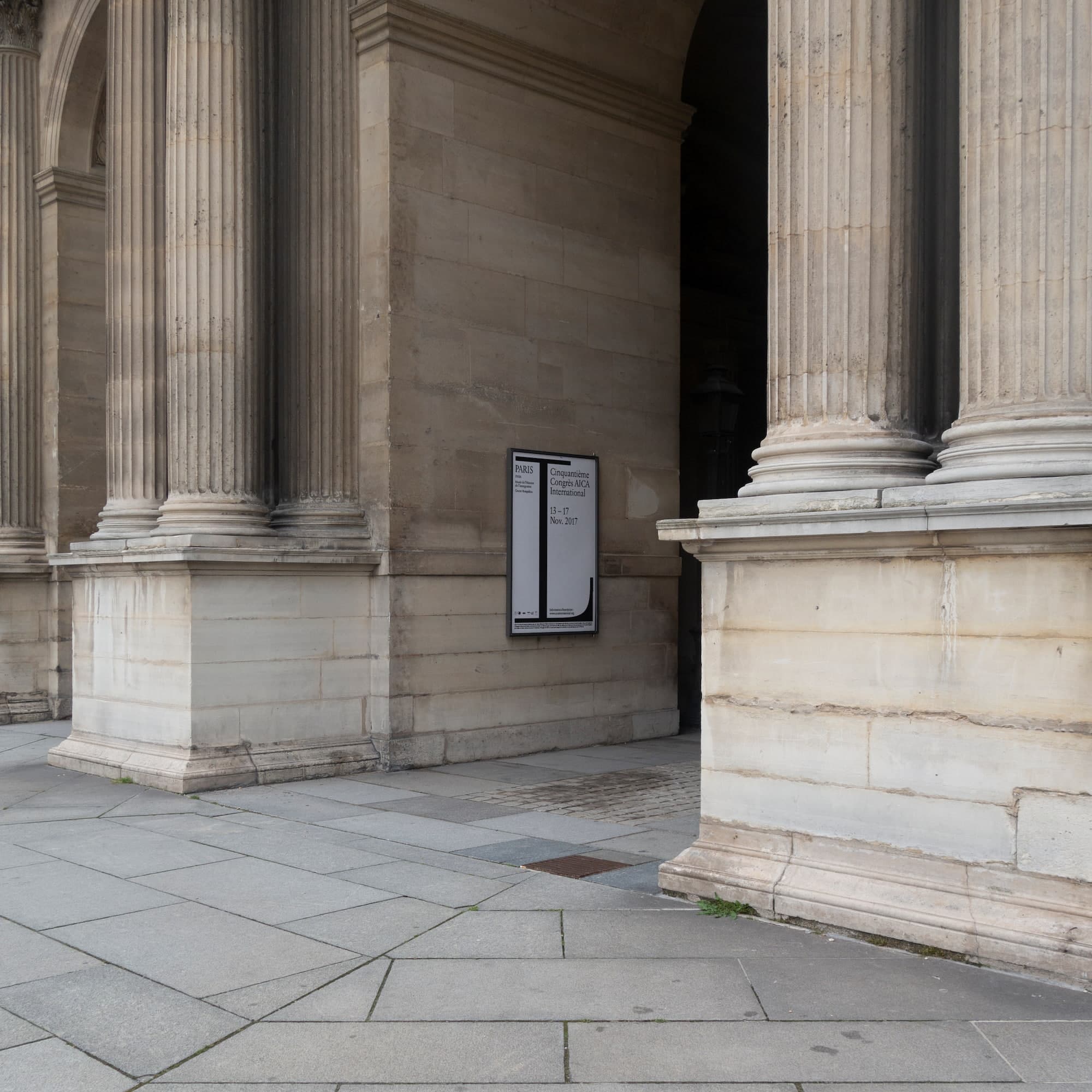 The (AICA) International Association of Art Critics Congress is an annual event for artists and art critics dedicated to dialogue and discussion around common matters. The 50th Congress that took place in Paris is identified by the letter “L” standing for 50 in Roman numerals. By its shape, the letter “L” naturally offers a space for expression and thus, the visual identity symbol became a vehicle for structuring the layout both for the event program and its poster.